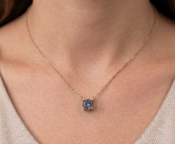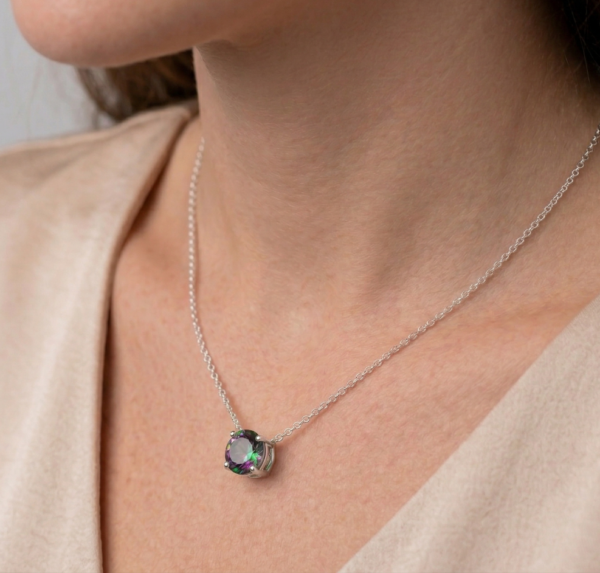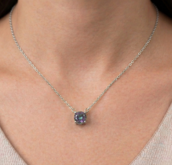 Add a touch of magic to your everyday look with this Mystic Topaz choker necklace, featuring a dazzling 5mm genuine Mystic Topaz that reflects beautiful rainbow hues with every movement.