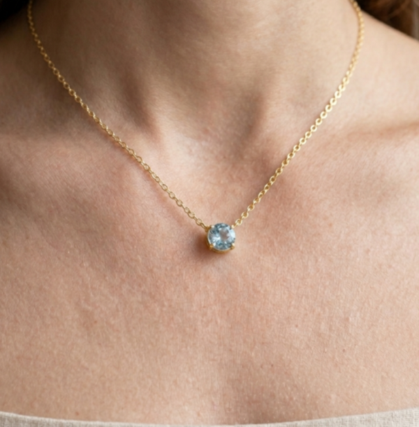 Delicate, timeless, and handcrafted with care, this genuine aquamarine choker necklace is a beautiful addition to any jewelry collection.