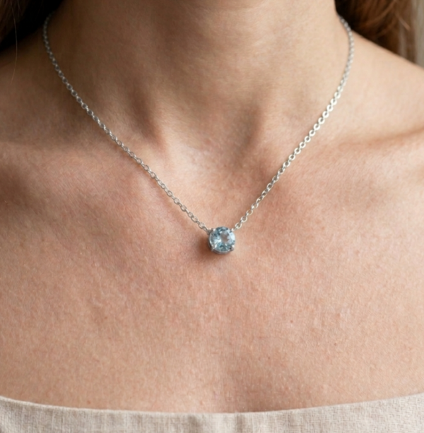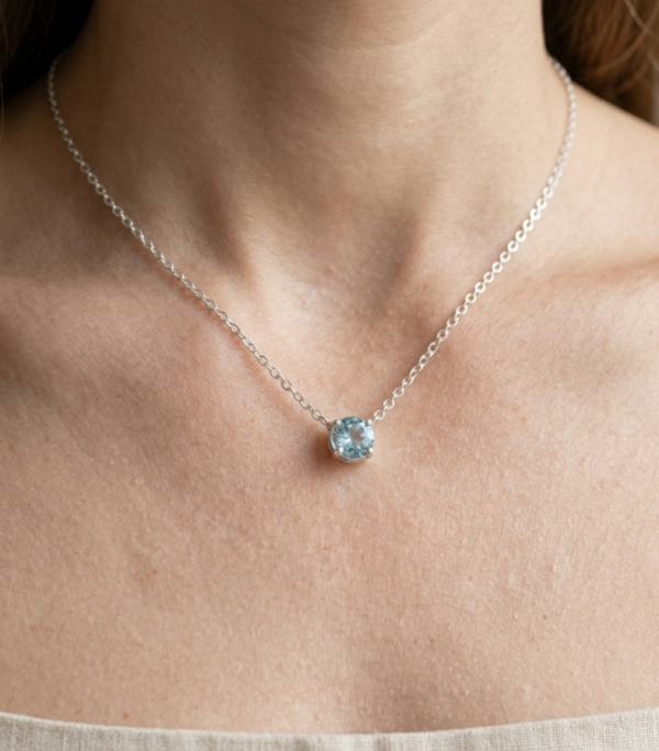 • Genuine natural aquamarine (6 mm, ~1 carat)