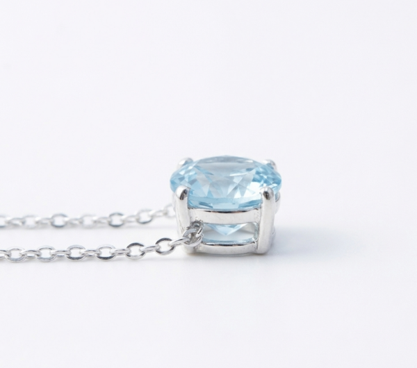 Aquamarine choker necklace – March Birthstone – Genuine Aquamarine 6 mm choker necklace in Sterling Silver or Gold