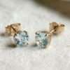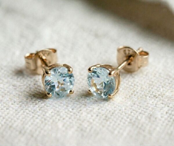Delicate, timeless, and perfect for everyday wear—these handmade Aquamarine stud earrings bring a soft touch of serene blue to any look.