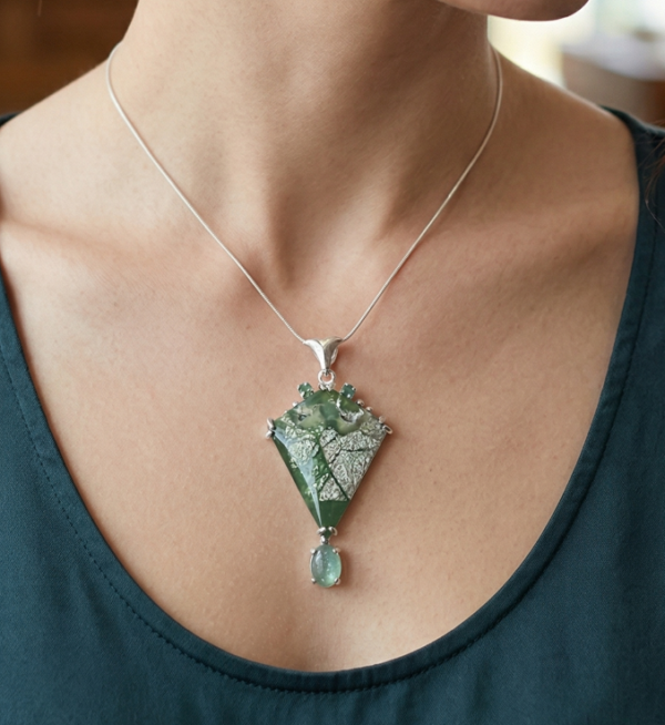 This necklace is perfect for those who appreciate organic beauty, rich green tones, and thoughtful design—a wearable piece of nature’s artistry.
