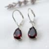 Garnet Earrings in Sterling Silver or Gold. Genuine Garnet cut in a perfect pear shape are approx. 10mm long x 7mm wide and approx. 1.5 carats each.