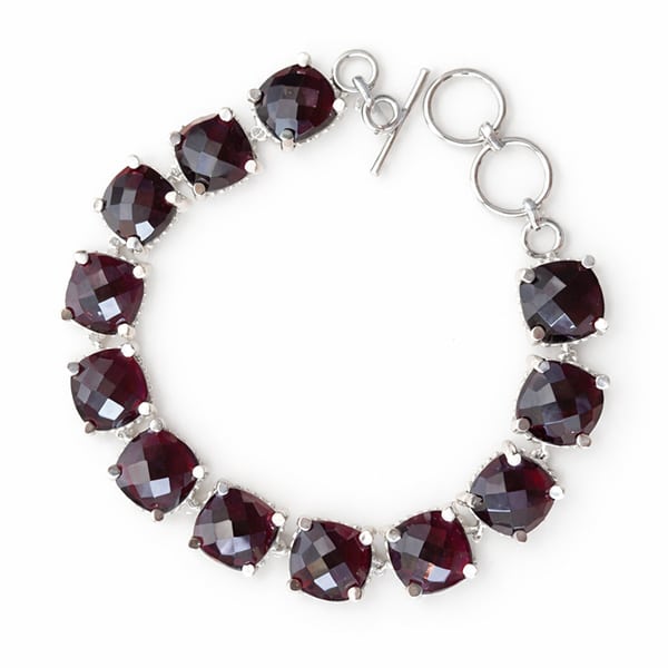 Garnet cushion checkerboard bracelet in Sterling Silver