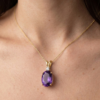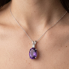 This elegant Amethyst and Diamond necklace showcases a rich purple gemstone paired with a delicate diamond accent, creating a timeless and sophisticated look. Handcrafted with care, this piece is perfect for everyday wear or special occasions.