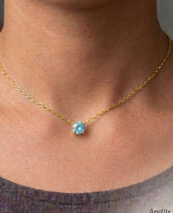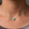 This delicate Apatite choker necklace features a genuine natural 5mm gemstone with a stunning blue-green hue, beautifully prong set in a handcrafted setting. A fresh and vibrant piece, perfect for everyday wear or layering.