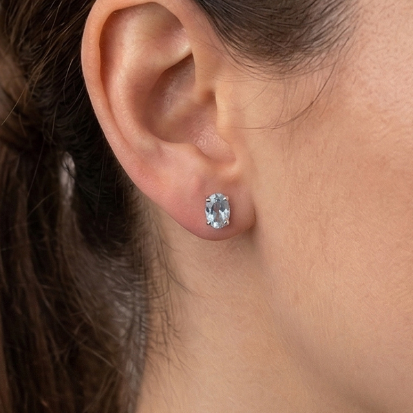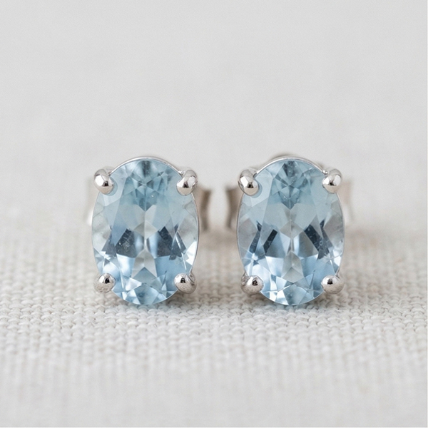 Genuine Aquamarine 6 x 4 oval studs in Sterling Silver or Gold