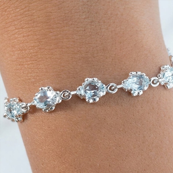The 8 inch bracelet has 14 Aquamarine stones for a total carat weight of approx 7 carats.