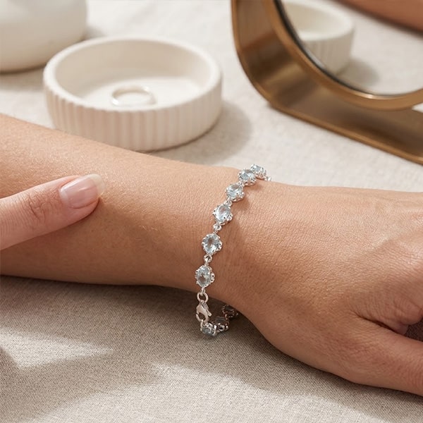 This gorgeous Aquamarine bracelet can be made in a choice of metals: Sterling Silver, Gold Plated, Rhodium Plated, 14K Yellow Gold, 14K Rose Gold and 14K White Gold.