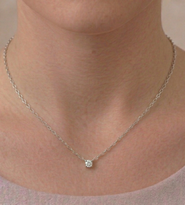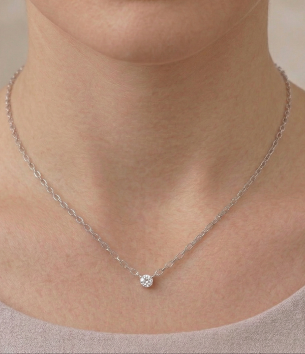 This delicate Cubic Zirconia choker necklace features a sparkling 3mm stone, beautifully prong set in a handcrafted Sterling Silver setting. A timeless and minimalist piece, perfect for everyday wear or layering.