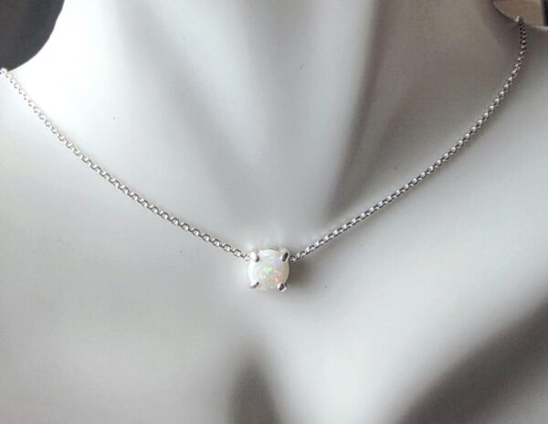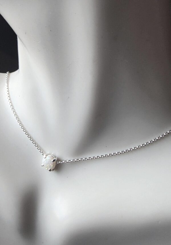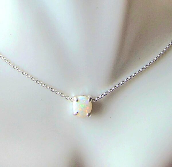 This lovely Opal choker necklace is Sterling Silver with a 5mm genuine Australian Opal, prong set in handmade settings..