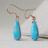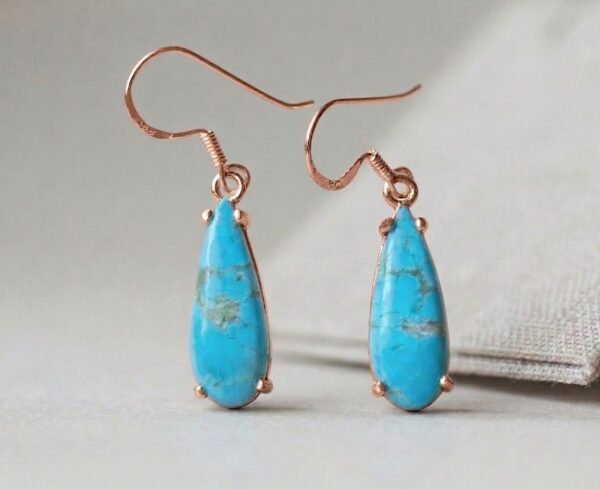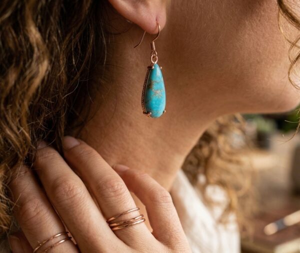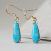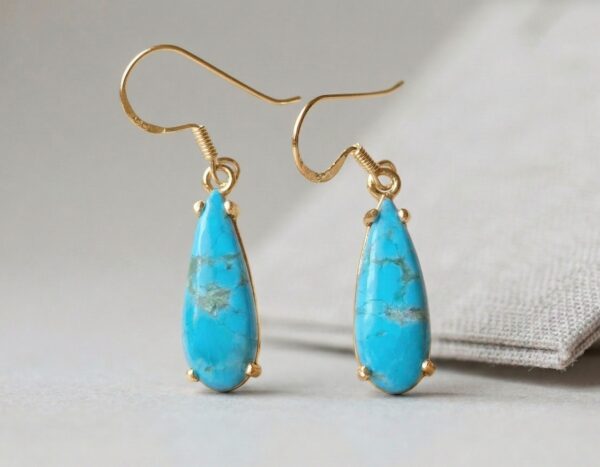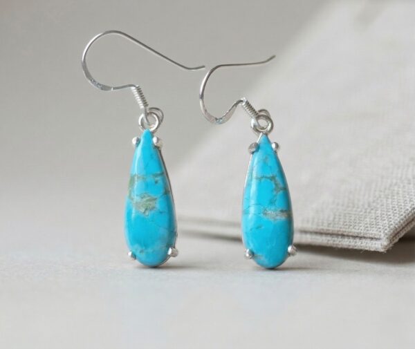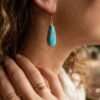 Suspended from classic ear wires, these earrings have an elegant length and movement, making them perfect for both everyday wear and statement styling. The combination of artisan craftsmanship and eye-catching turquoise creates a piece that is both timeless and distinctive.