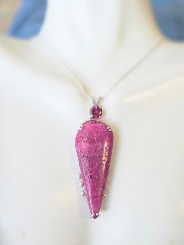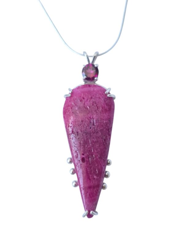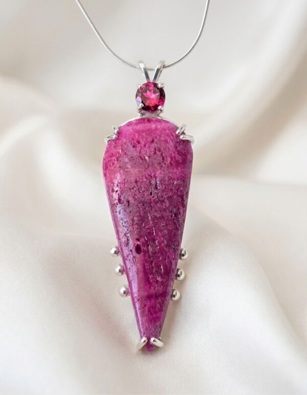 Celebrate raw beauty and rich crimson tones with this one-of-a-kind handmade Ruby and Ruby Quartz necklace, crafted in solid Sterling Silver.